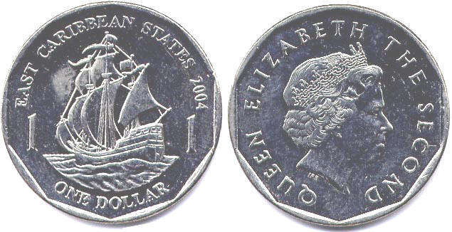EAST CARIBBEAN STATES 2004 / 1 1 ONE DOLLAR / Галеон "Золотая лань" Фрэнсиса Дрейка
