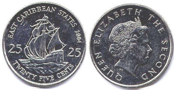 EAST CARIBBEAN STATES 2004 / 25 25 TWENTY FIVE CENTS / Галеон "Золотая лань" Фрэнсиса Дрейка