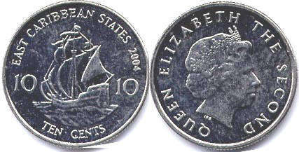 EAST CARIBBEAN STATES 2004 / 10 10 TEN CENTS / Галеон "Золотая лань" Фрэнсиса Дрейка