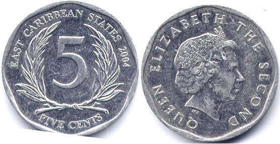 EAST CARIBBEAN STATES 2004 / 5 FIVE CENTS / Венок разделяет номинал цифрой и буквами