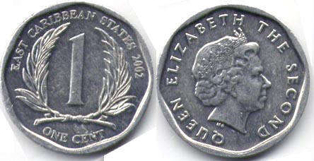 EAST CARIBBEAN STATES 2002 / 1 ONE CENT / Венок разделяет номинал цифрой и буквами