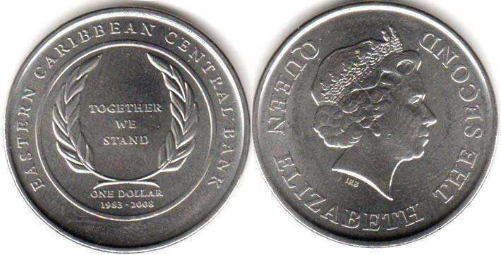 EASTERN CARIBBEAN CENTRAL BANK / TOGETHER WE STAND / ONE DOLLAR 1983-2008 / Девиз в венке