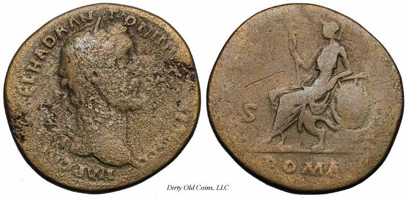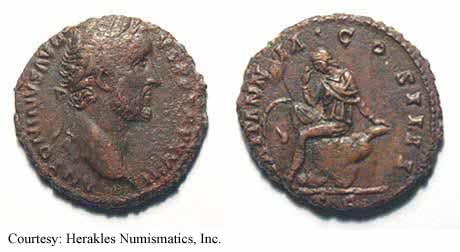 Аверс: IMPTAELCAESHADRANTONINVS - Непокрытая голова вправо.