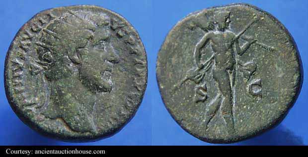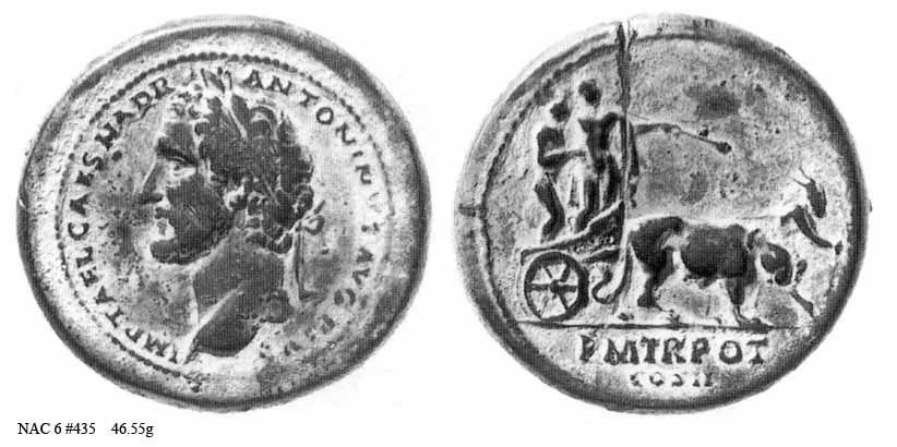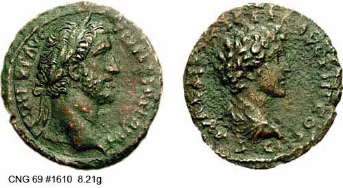 Аверс: IMPTAELCAESHADRIANTONINVS - Непокрытая голова влево.