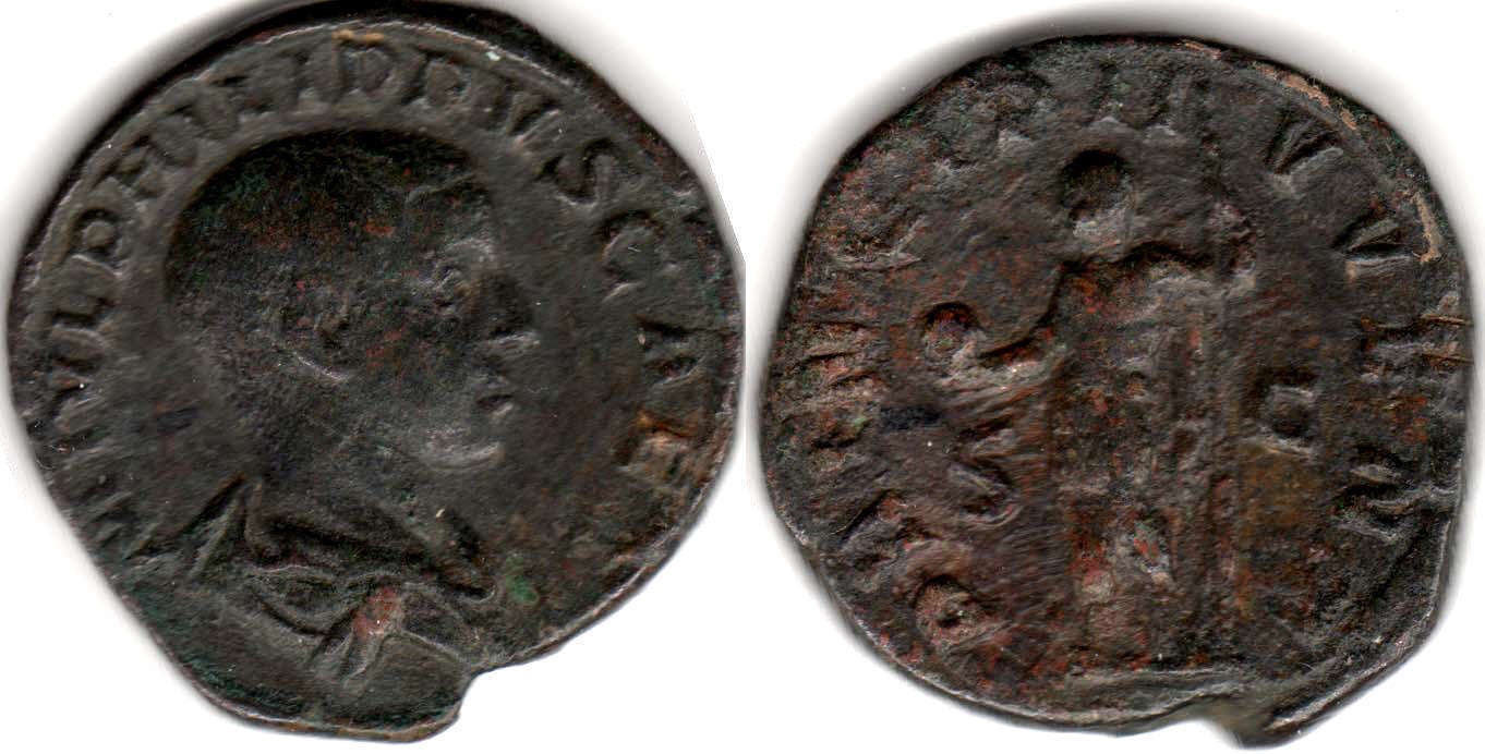 Филипп стоит вправо, держит копьё и глобус / Младший Принцепс Наследник